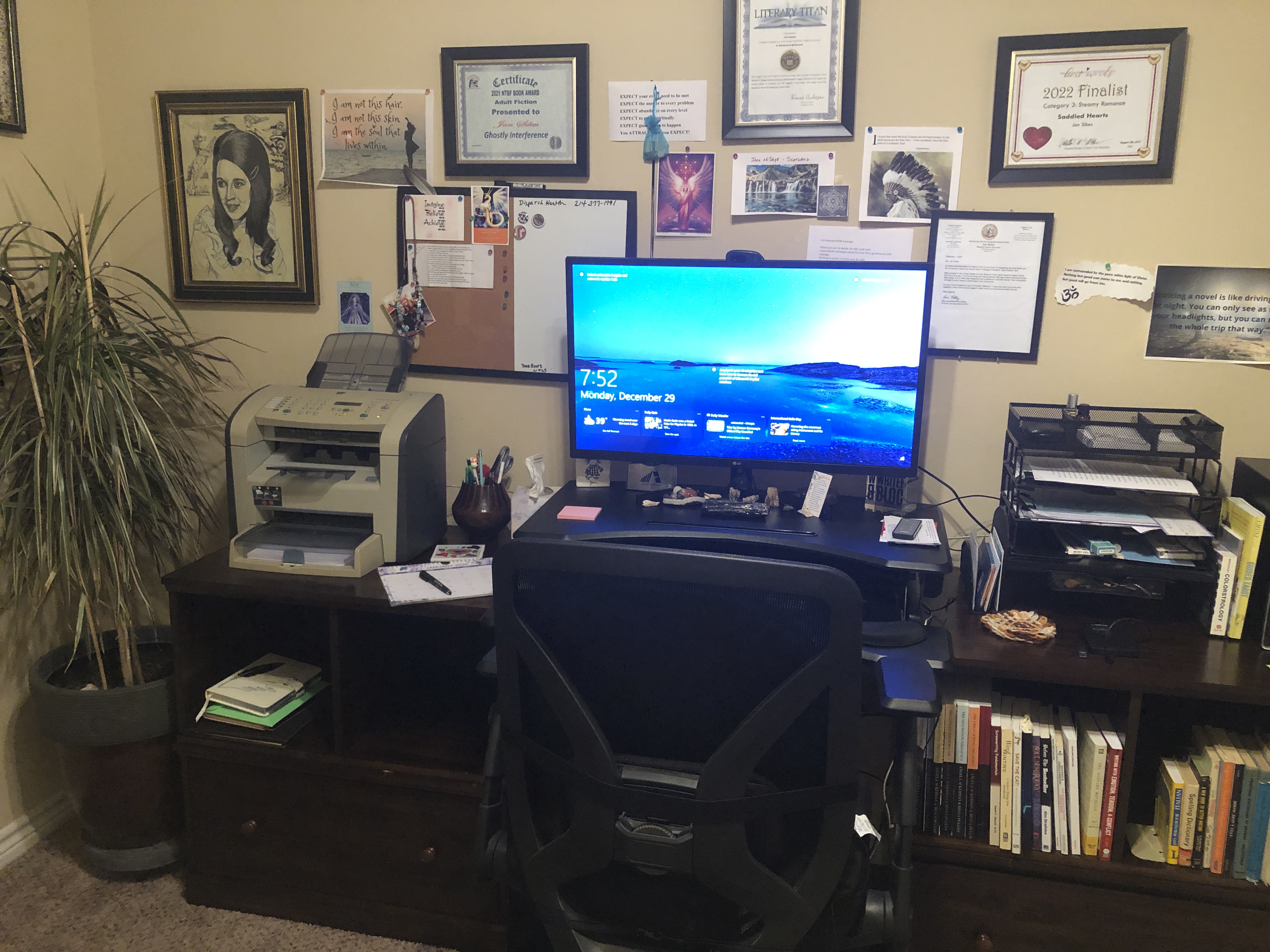 10. Great rundown. What a good life you lead, Jan. Love your streamlined office. That monitor–I love it! The only change between mine is the printer. Mine is stuck in a cabinet because I print so little.