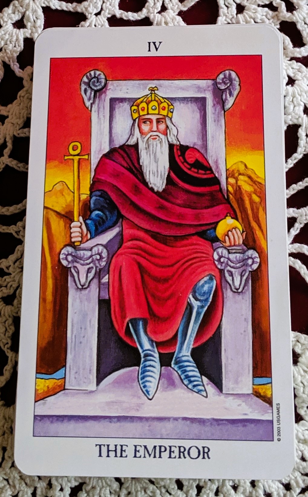 The Emperor is the 4th card in the Major Arcana. Keywords associated with him are: Inspired Action and Personal Power. There are so many beautiful aspects to this card and I’ll do my best to summarize. While clothed in a robe, he is wearing his armor beneath which indicates he is ready to spring into action at any given moment. His throne is solid and grounded. The card often suggests you need to act with logic and strategy. It’s time to stop dreaming and start organizing. Set boundaries and take the lead. That seems like a good card to step into a new year with. What do you think? Can you relate?