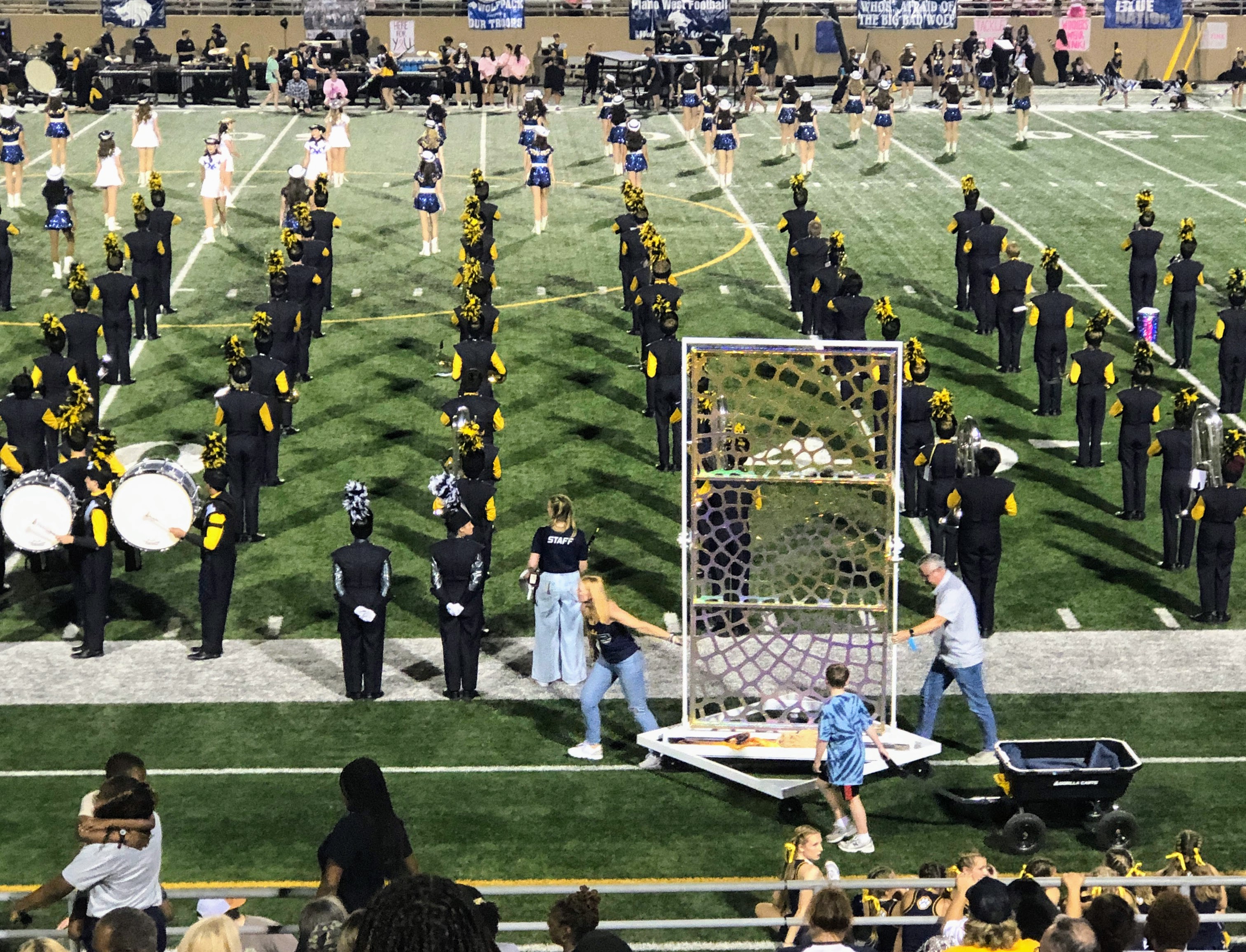 The band is large! That’s my oldest daughter helping set up one of the props, and my youngest grandson pulling the wagon. My daughter is definitely a band mom!