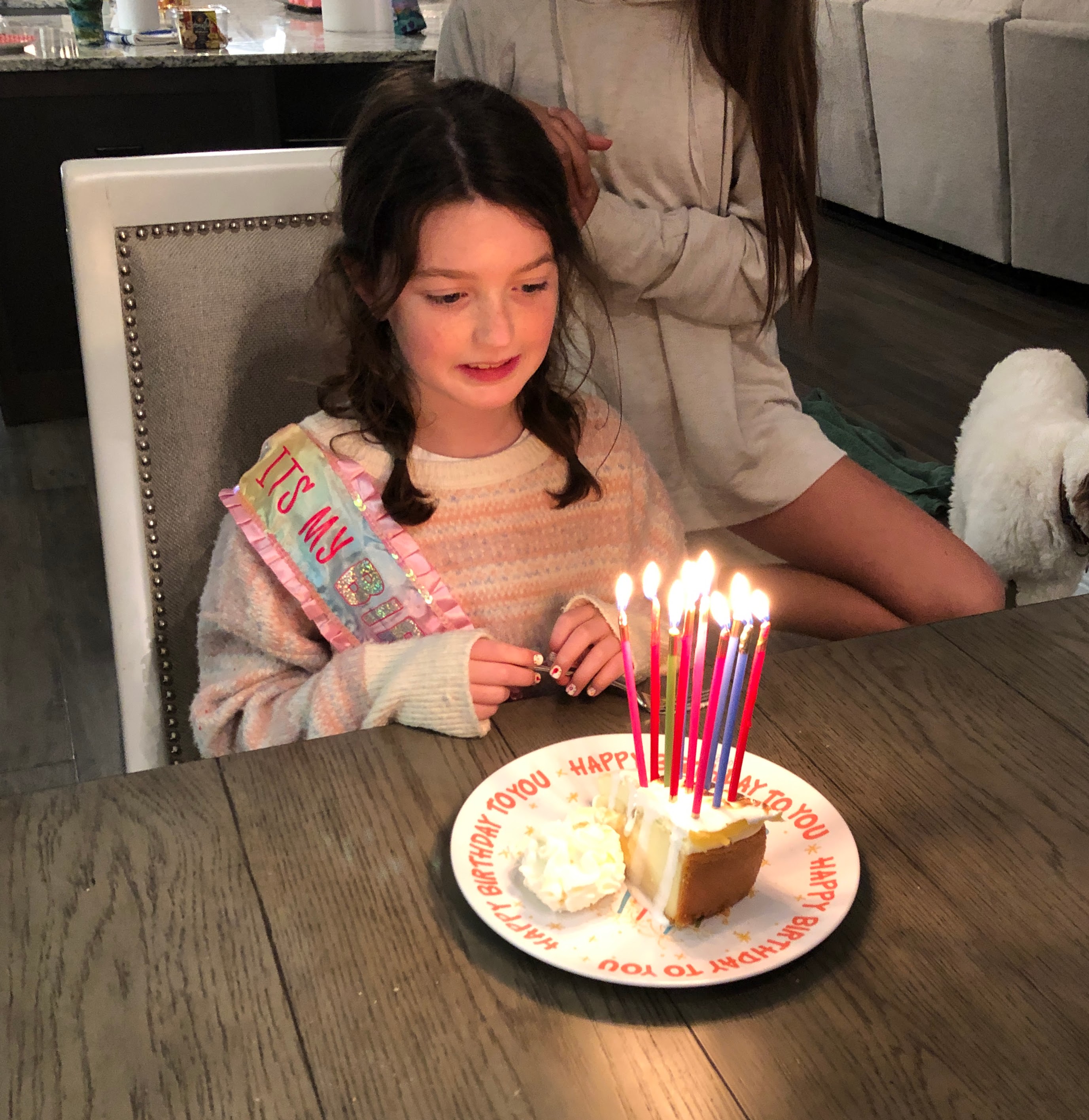 On the family front, my youngest granddaughter turned double digits, the big 10 on February 11th! We no longer have any little ones. They are all growing fast. Look at all those candles! And that is a piece of lemon cheesecake from The Cheesecake Factory – her favorite!