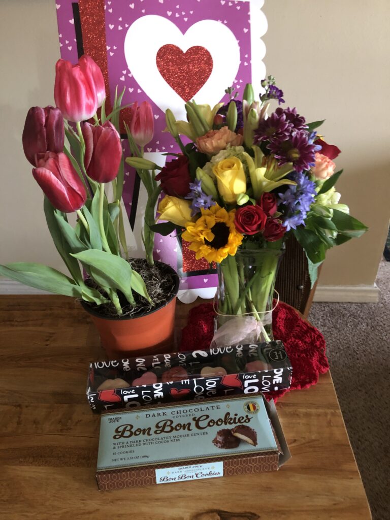 Valentine’s Day is bittersweet for me. Rick always gave me the most thoughtful and wonderful gifts. So my girls keep up the tradition and they shower me with flowers and goodies.