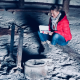 Once the balloon is attached to the overturned basket, they set in place big diesel-powered fans to begin inflating it.